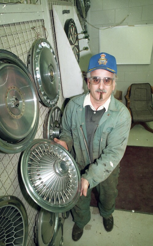 - Shots of Mike Daniels and his hub cap collection at the City Maintenance Centre, Chippawa.