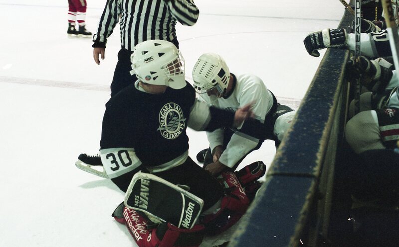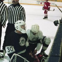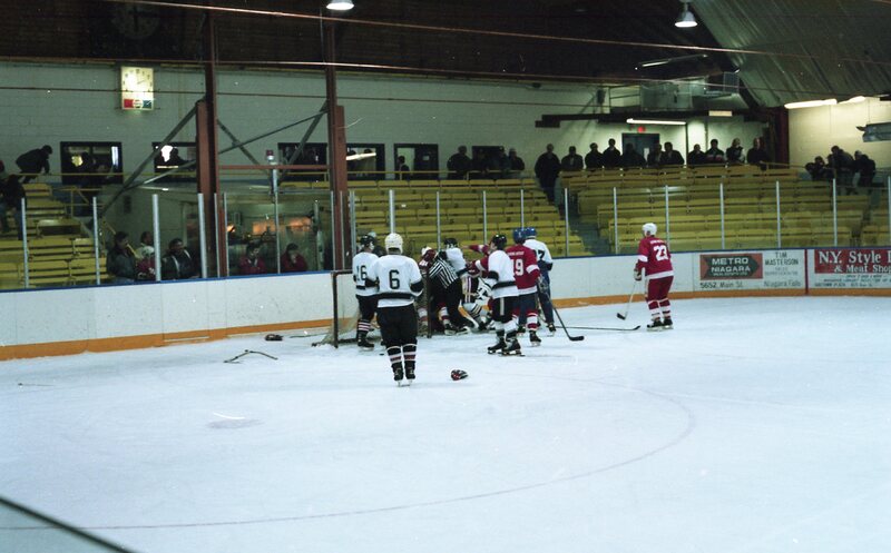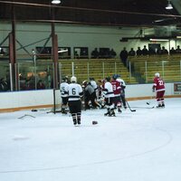 - Hockey players playing hockey at the Jack Bell Arena.