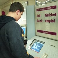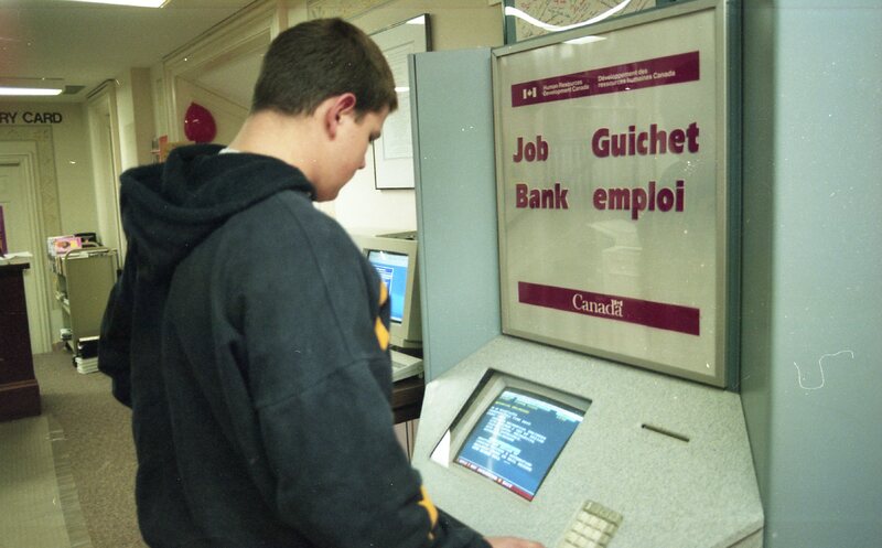 - Pictures of Jeremy Froese trying to job bank computer at NOTL Public Library (this strip also includes pictures of hockey alongside the NOTL job bank pictures).