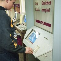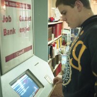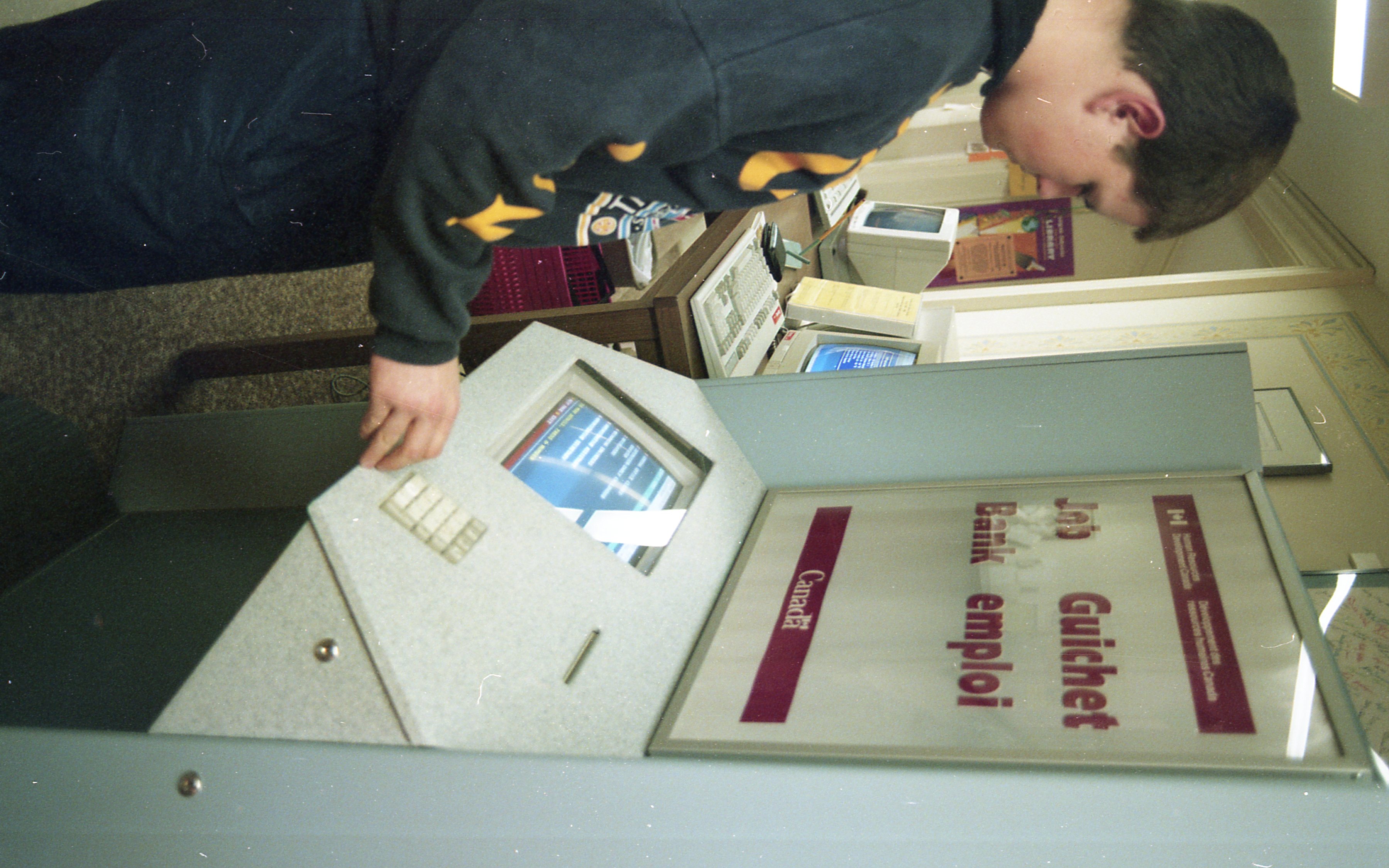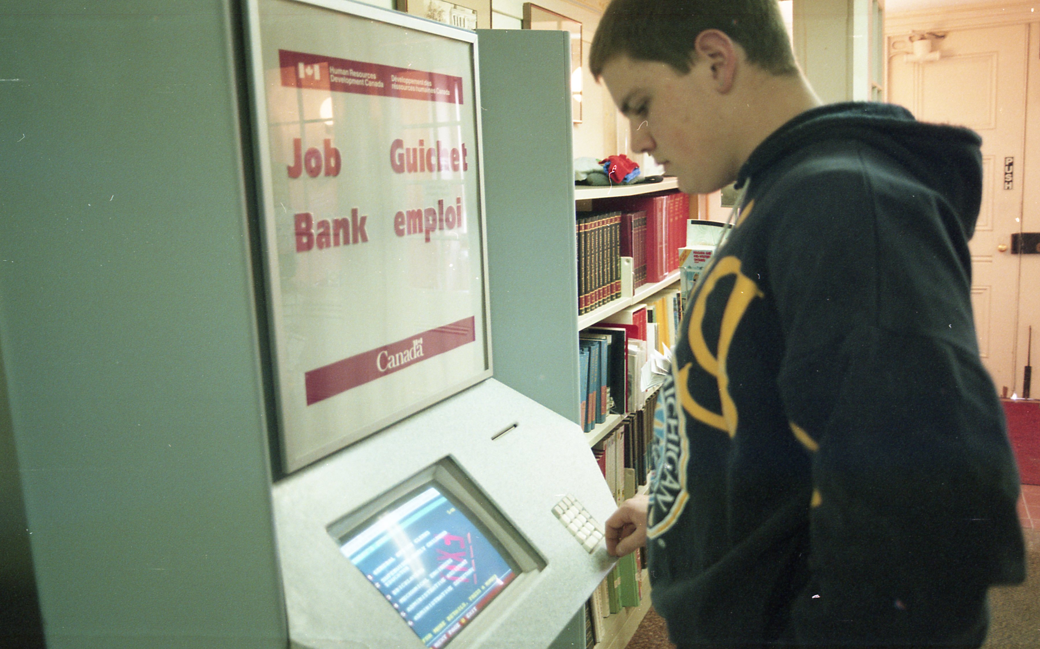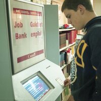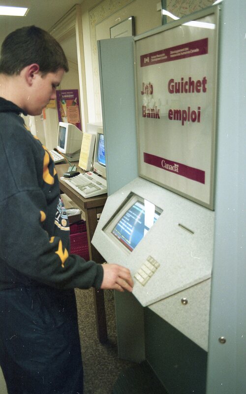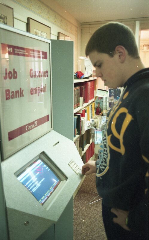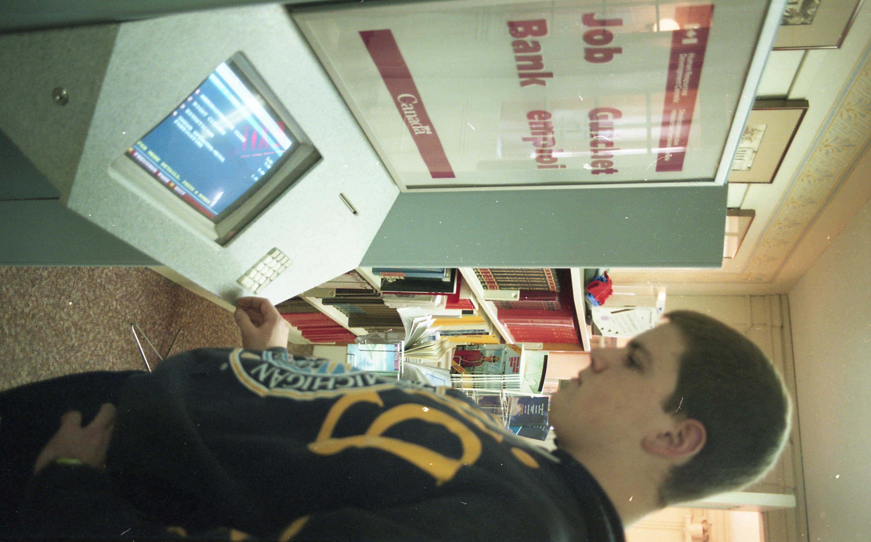 - Pictures of Jeremy Froese trying to job bank computer at NOTL Public Library.