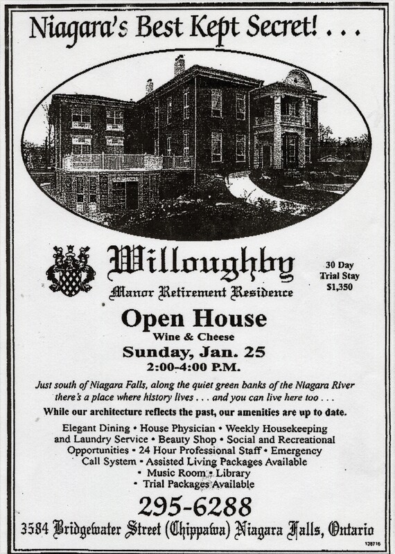 - Willoughby Manor Retirement Residence / Open House / Sunday January 25 / Bridgewater Street