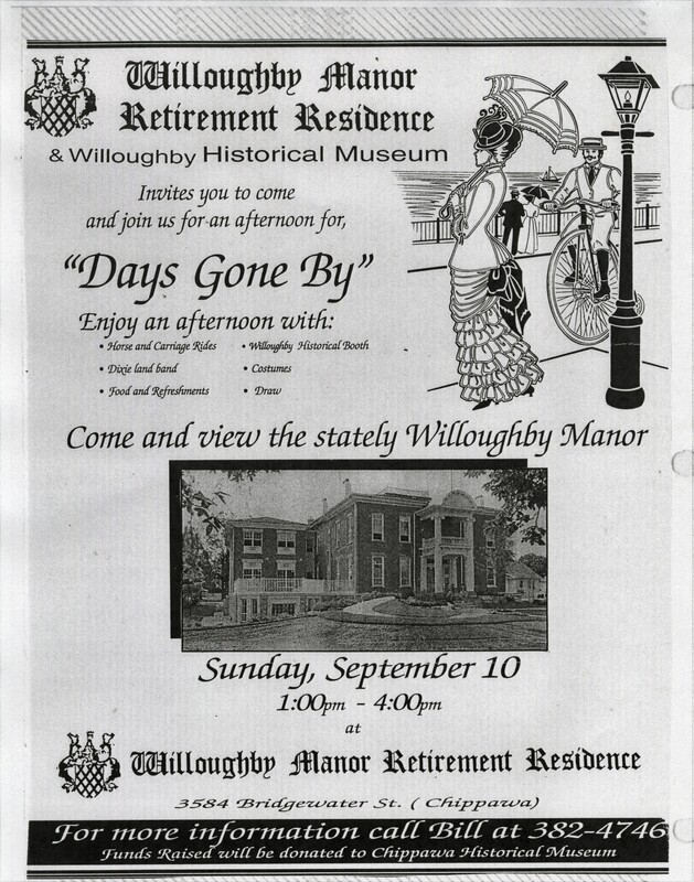 - "Days Gone By" / Willoughby Manor Retirement Residence / open house / Willoughby Historical Museum
