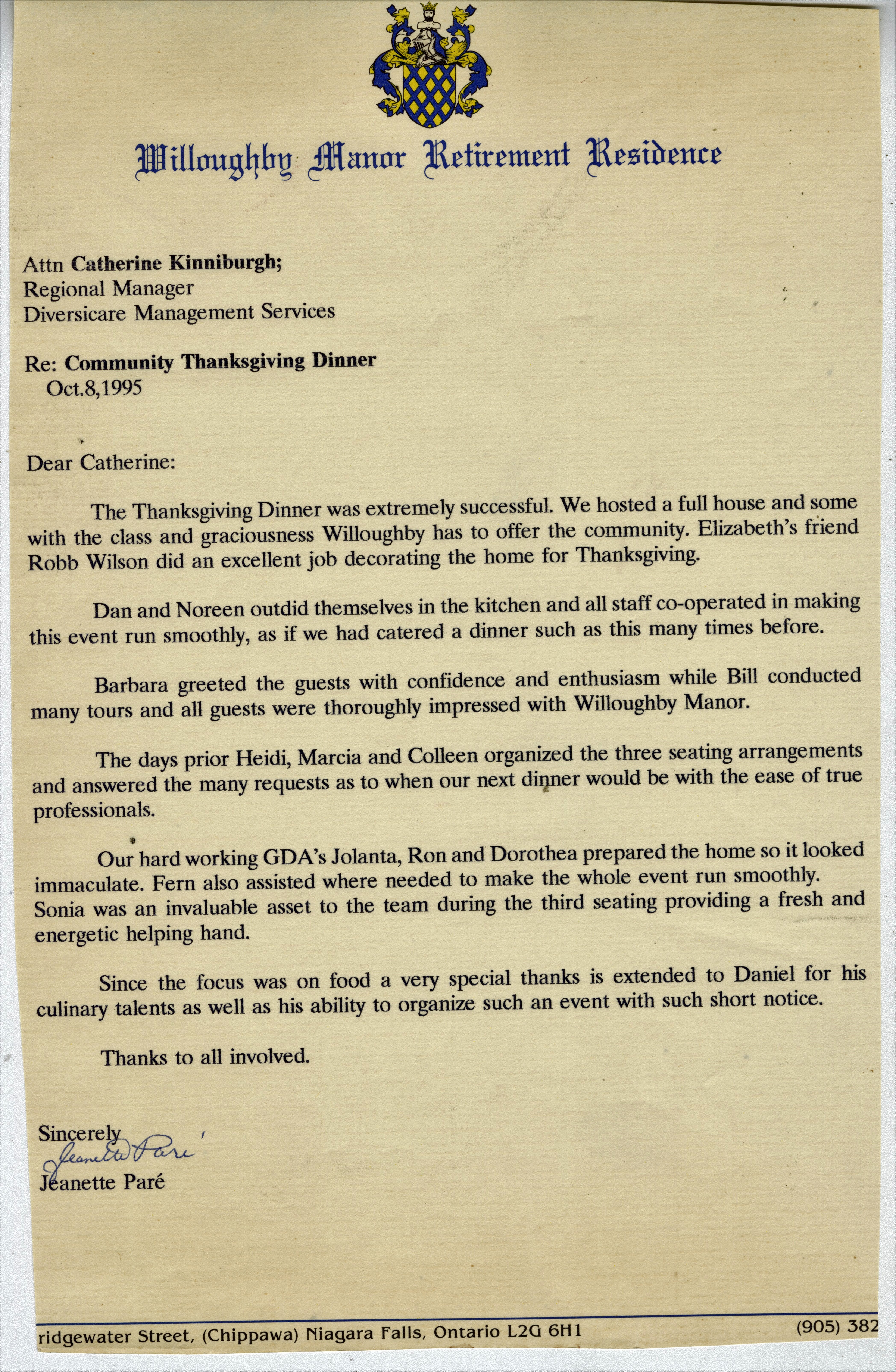 Willoughby Manor Retirement Residence Letter