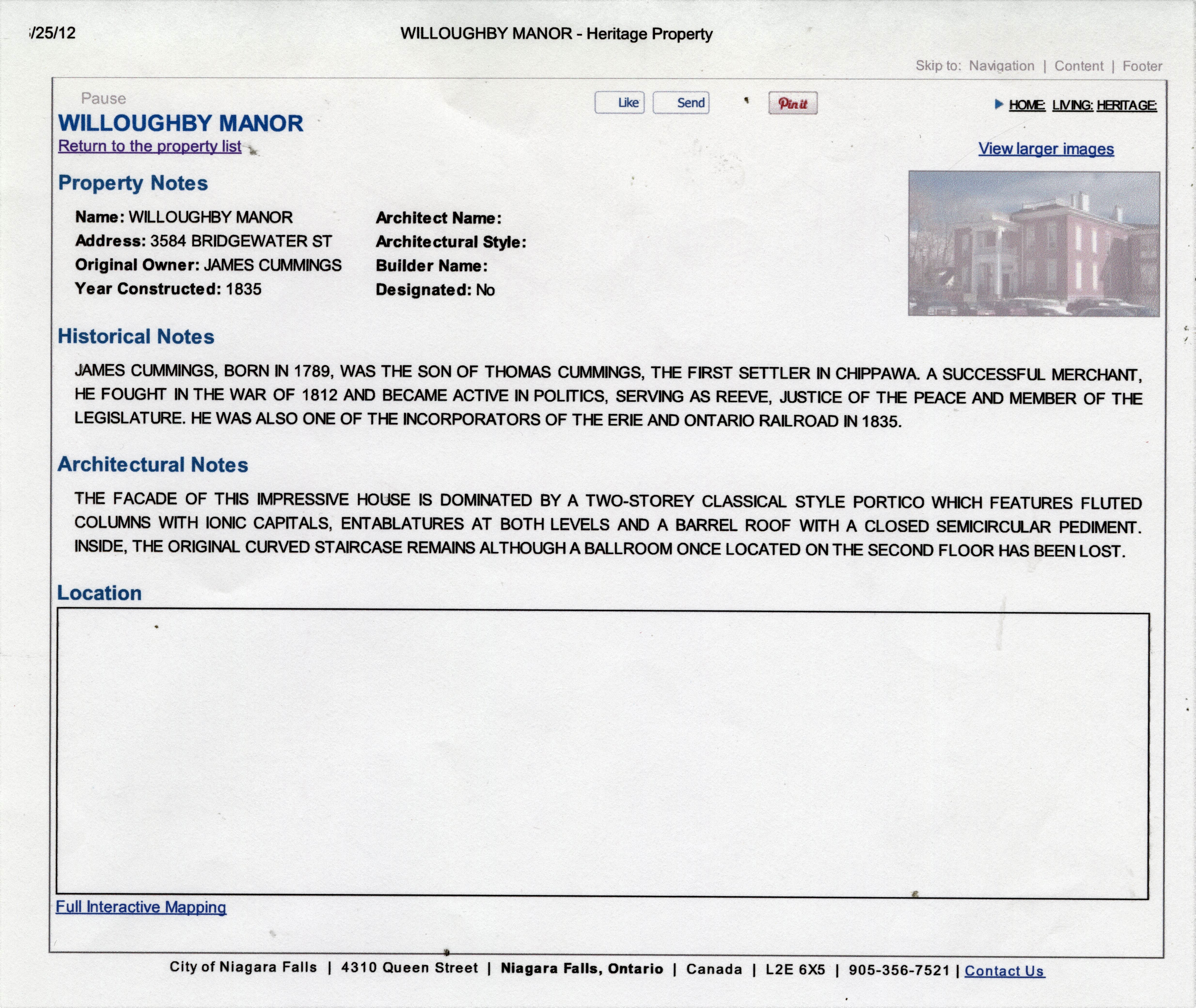 - Willoughby Manor / Architectural notes / historical notes / Heritage Property