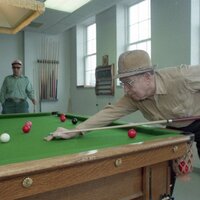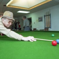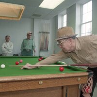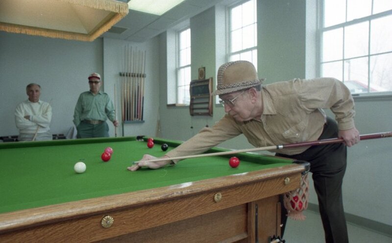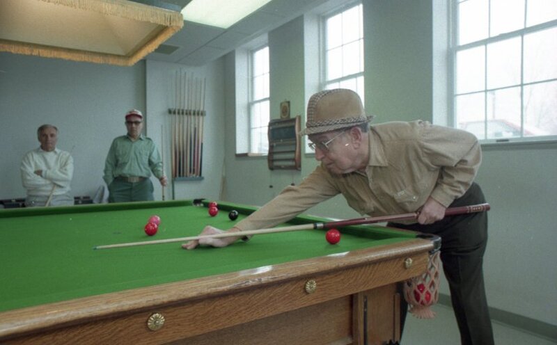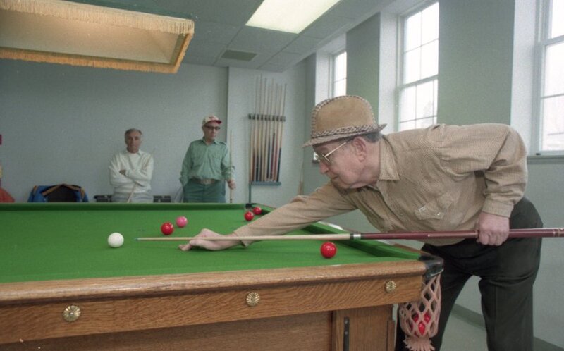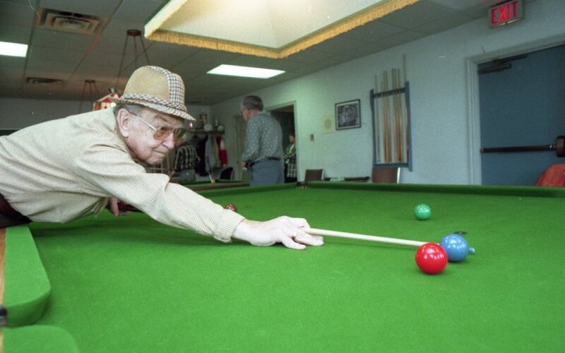 - Guys (seniors) playing pool at centre to go with Gord’s story. Pictured is John Chomick (with hat).