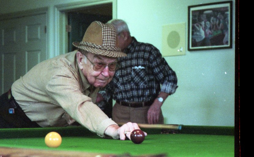 - Guys (seniors) playing pool at centre to go with Gord’s story. Pictured is John Chomick (with hat).