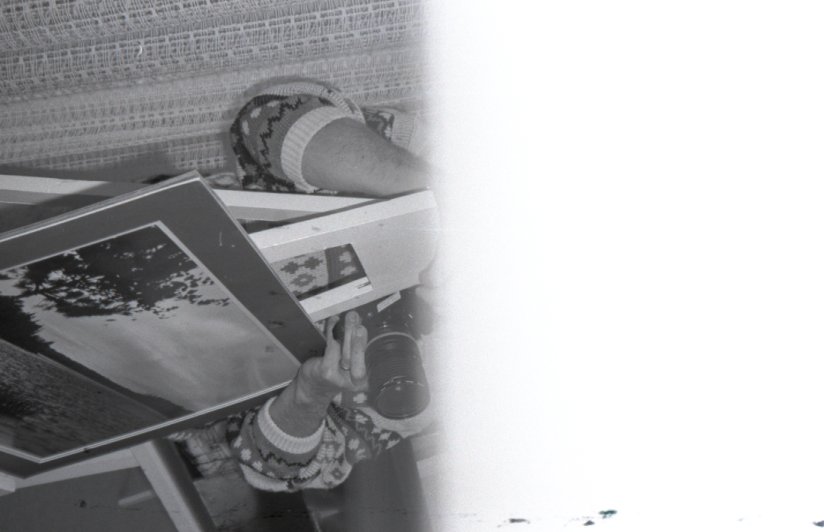 - 1 Strip of 35mm negatives, b&w, 2 frames, and 1 frame seeming to be damaged