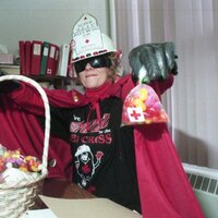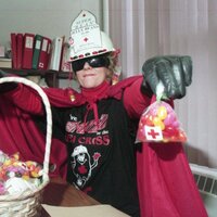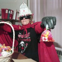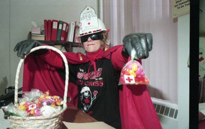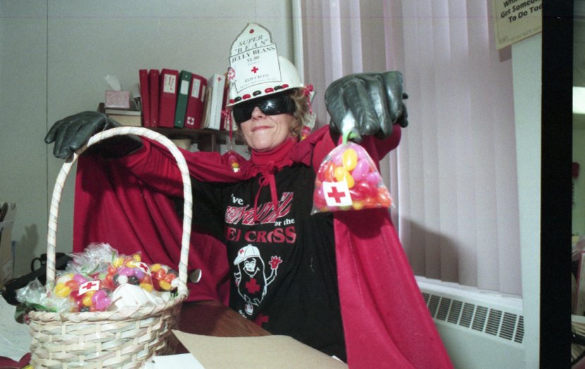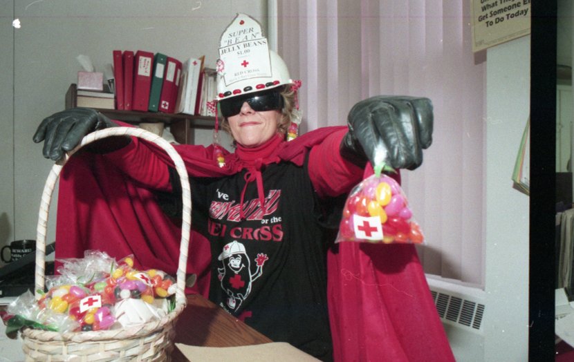 - Picture Renate in costume with Jelly Beans for fundraiser