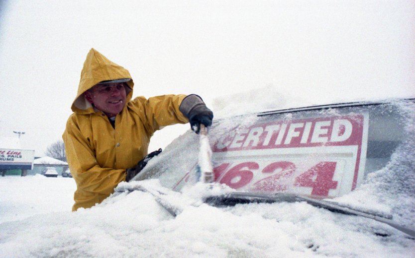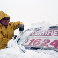 - Shoveller, snow plough with a piece of snow, kids playing at recess. Ian Young cleaning off his car.