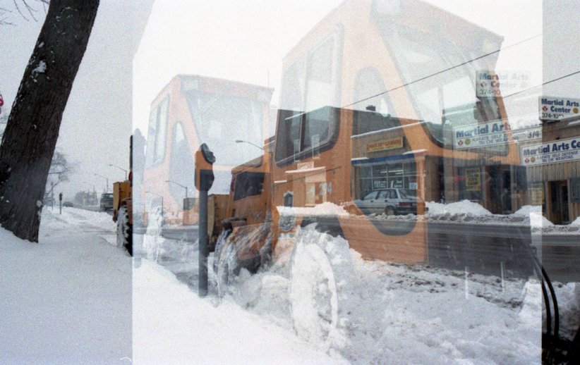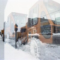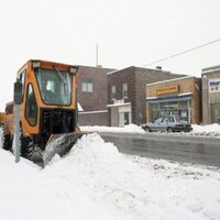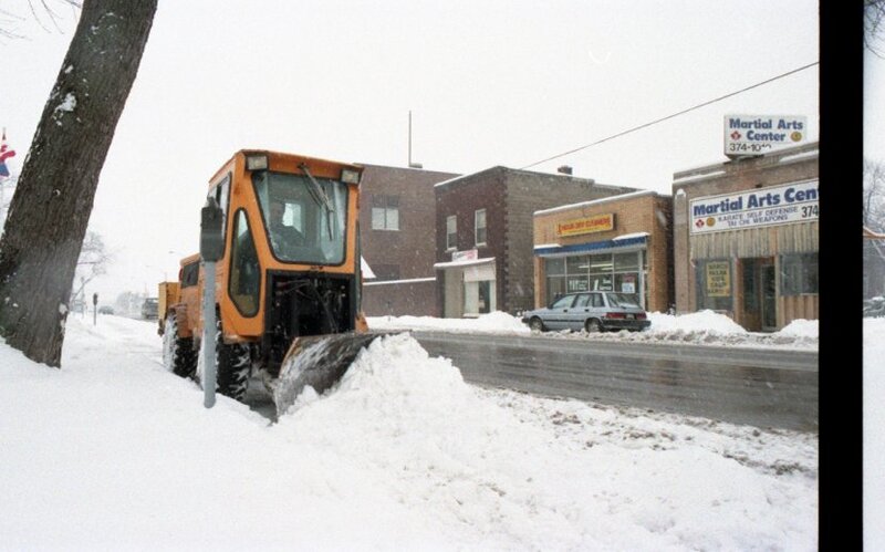 - Shoveller, snow plough with a piece of snow, kids playing at recess. Ian Young cleaning off his car.