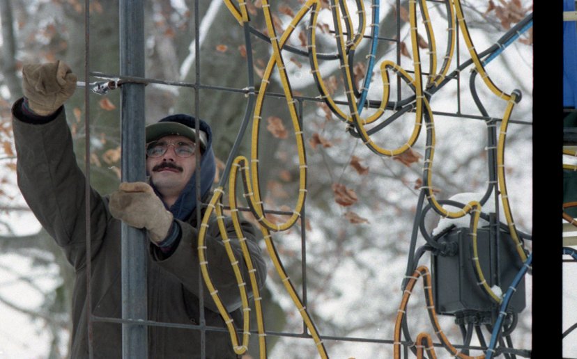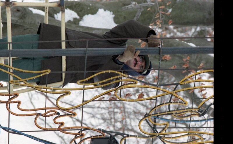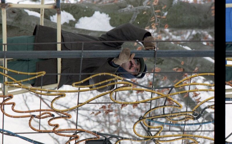 - City employee Frank Cianfagna takes down the last few displays from the Festival of Lights