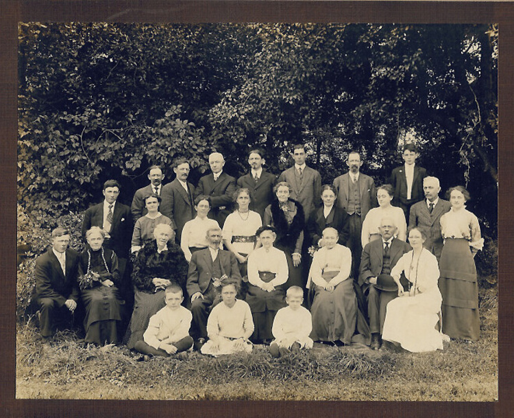 - en-CA (L to R) Front Row: Erle Laws, Dorothy Garner, Roswell Garner 2nd Row: Chester Laws, ?, Jenna Steele, Anson Garner, Mrs. Amanda Garner, Abigail Robinson, ?, Hattie J. Garner 3rd Row: Wilbur Laws, Mrs. Wilbur Garner, Mrs. John Laws, Mrs. Ernest Garner, Mrs. Lampman, ?, Allie Garner, John Laws, Mrs. Chester Laws Back Row: Oscar Garner, Wilbur Garner, Charles K. Robinson, Ernest Garner, Roy C. Laws, Orin Garner