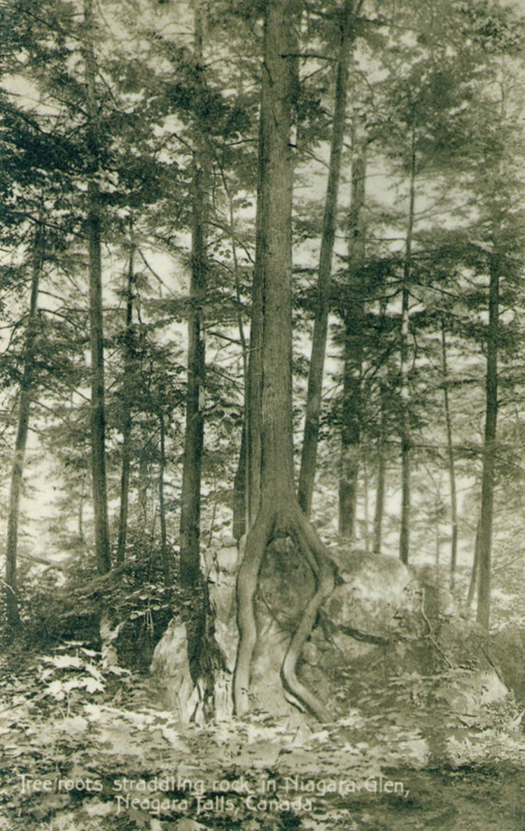 Tree roots straddling rock in Niagara Glen Niagara Falls Canada