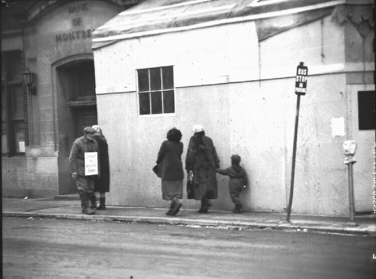 - Type:picketers; No. of negatives: 1; Photos included: 0; Notes: Client: Smith Bros. ; Bank of Montreal (left) ; Queen Street ;