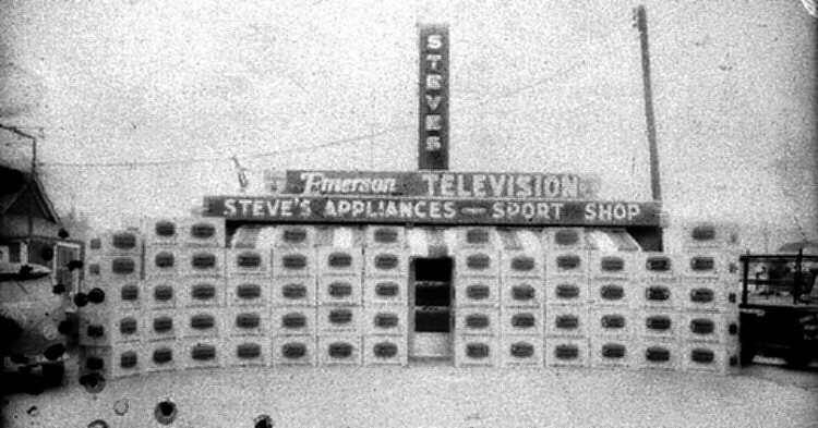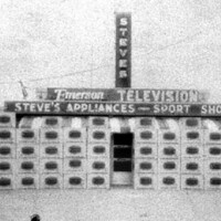 - Type:appliance store; No. of negatives: 2; Photos included: 0; Notes: Emerson T. V. boxes covering exterior of store; Client: Steve's Appliances