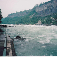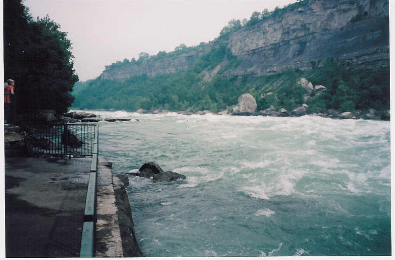 Whirlpool Rapids from Great Gorge Advenute - looking north, parts of railing in shot