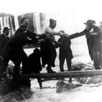 - en-CA Carlisle Graham (stunter) at left with moustache; Red Hill, Sr. in hat extending hand at right. ; Also in book Over Niagara in a Barrel by Orrin E. Dunlap. Published by World Wide Magazine, 1902. LHC 971.339 D921