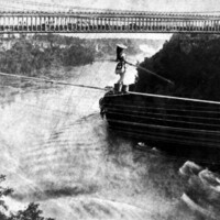 - Maria Spelterini crossing from the U.S. side to Canada with her feet in baskets