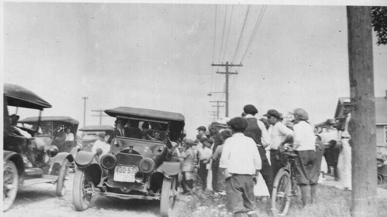 Bobby Leach arrving for his parachute jump 1920