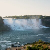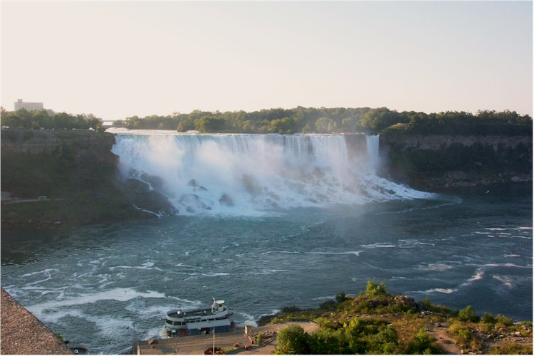 - Maid of the Mist in dock with the American Falls in the background, Niagara
