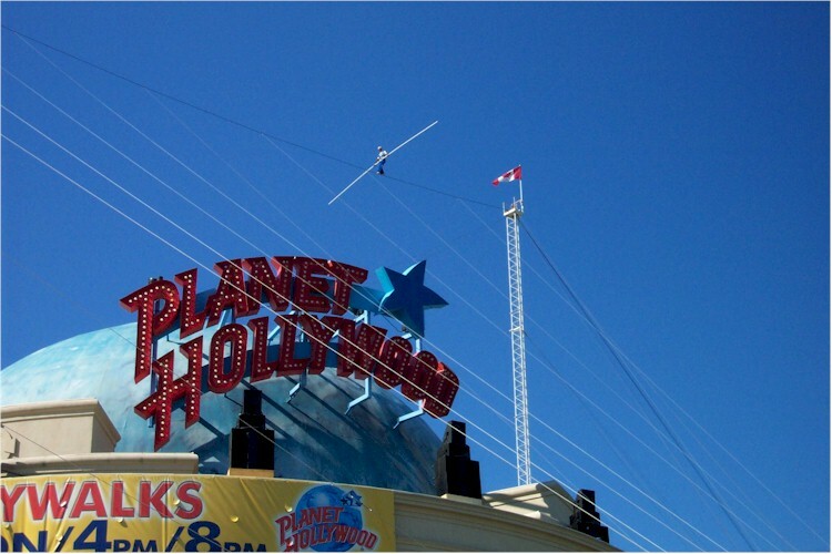 Jay Cochrane walking the high wire above Planet Hollywood Niagara Falls
