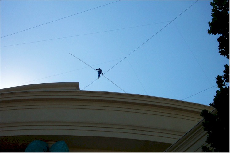 Jay Cochrane skywalking above Planet Hollywood Niagara Falls
