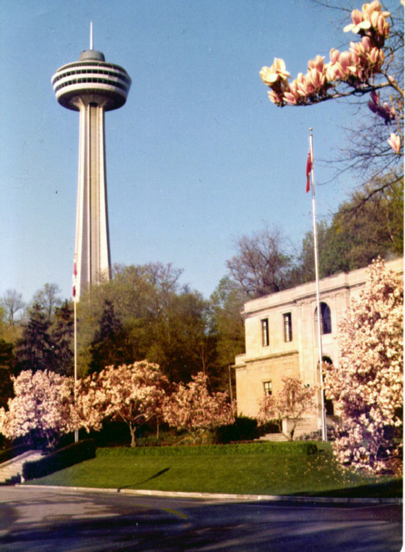 Administration Building, Niagara Parks Commission, Canada with Skylon Tower in background