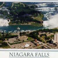 - Spectacular aerial view of the American Falls,the Canadian Falls with the Skylon Tower in centre