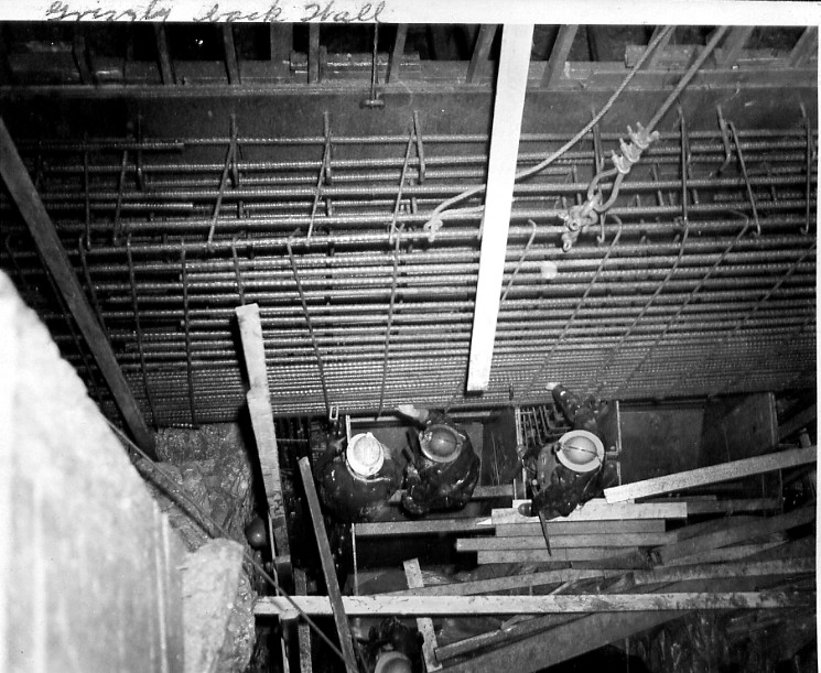 - en-CA Front wall of grizzly being re-inforced for concreting. Notice measuring pockets at bottom