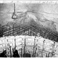 - en-CA Concrete crew pouring the ring through an elephant trunk. Top view of ring showing wooden form as well as re-inforcing steel work. Just about completed and ready for pouring