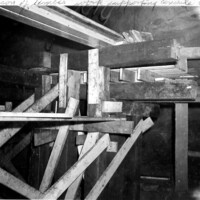 - en-CA Timber work 30ft high being erected to support floor on which concrete ring will be formed and poured