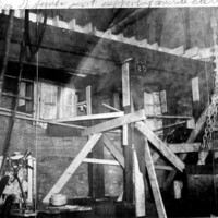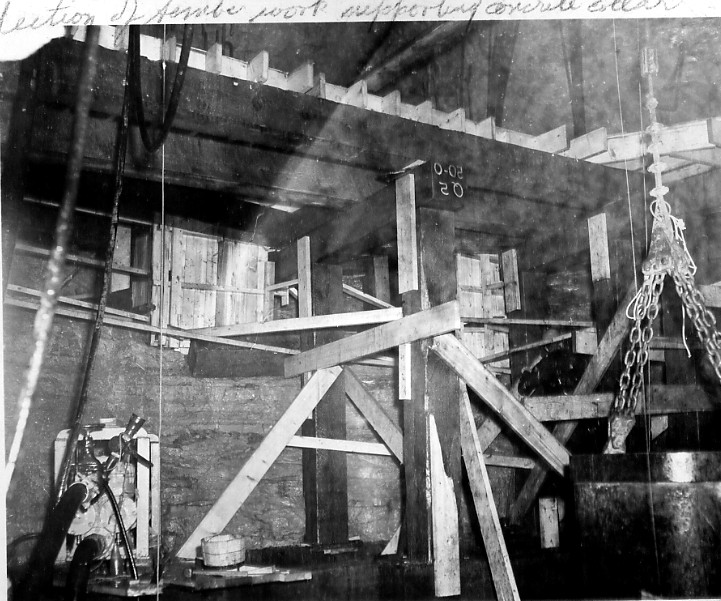 - en-CA Timber work 30ft high being erected to support floor on which concrete ring will be formed and poured