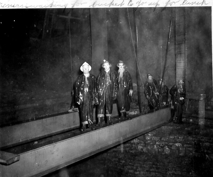 - en-CA Miners waiting for bucket to go up for lunch