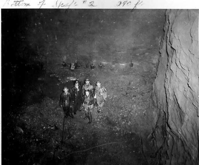 - en-CA Bottom of shaft no.2 290 ft. Yours truly (i.e.Fred Helie) with 2 Hydro engineers and 2 of our own engineers studying lay-out for structional steel to be erected