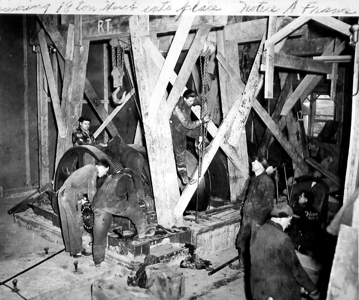 - en-CA Lowering 18 tons hoist into place. Notice A Frame used for this operation