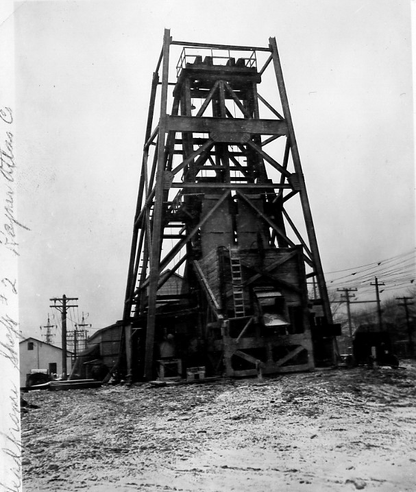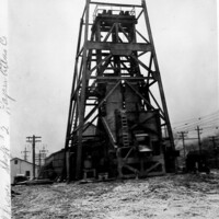 - en-CA Erecting steel headframe around temporary one. Shaft no.2