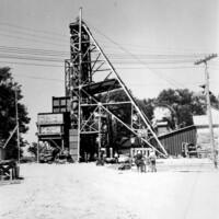 - en-CA Shaft No.1 completed. The stand on the left edge of the picture carries a grouting machine. A crack in the tunnel right below this spot gave some trouble with a steady stream of water pouring out of it. This grouting machine was used to seal this crack 350 ft below