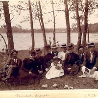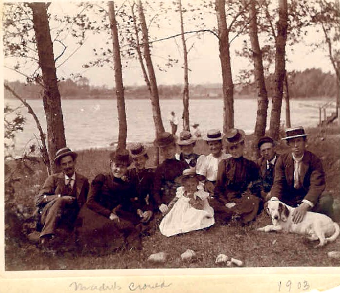 - black & white photograph ; origin and source of photograph unknown ; written by hand on bottom edge of photograph [writing unreadable] crowd, 1903