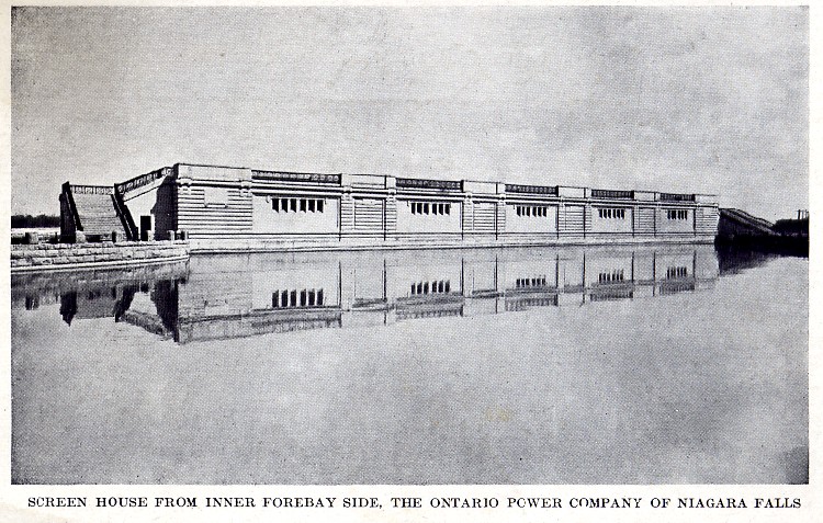 - Screen House from inner forebay side the Ontario Power Company of Niagara Falls