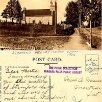 - en-CA Although the postcard has been addressed and written it does not appear to have been mailed ; message is addressed to Miss A Misener, Montrose, Ont. ; message reads Dear Bertie, I am sending you this picture of Stamford Church and also one of our "church St. Andrews". Write and tell me who all the new teachers are up in that part of the country. M. Gardner ;