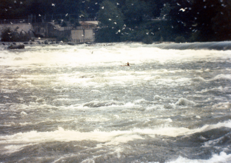 - Jesse W Sharp (1) - paddling his kayak toward the brink of the Horseshoe Falls