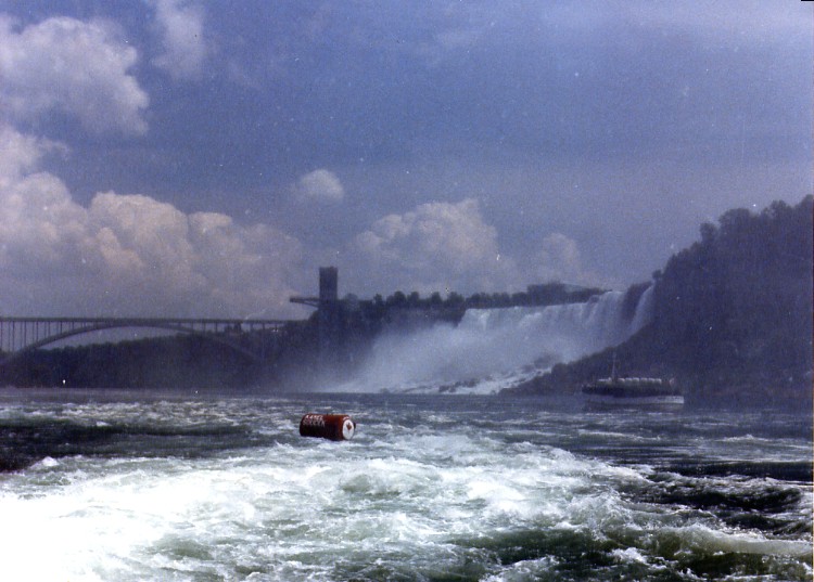 - Rainbow Bridge in extreme background, Maid of the Mist to right of photograph