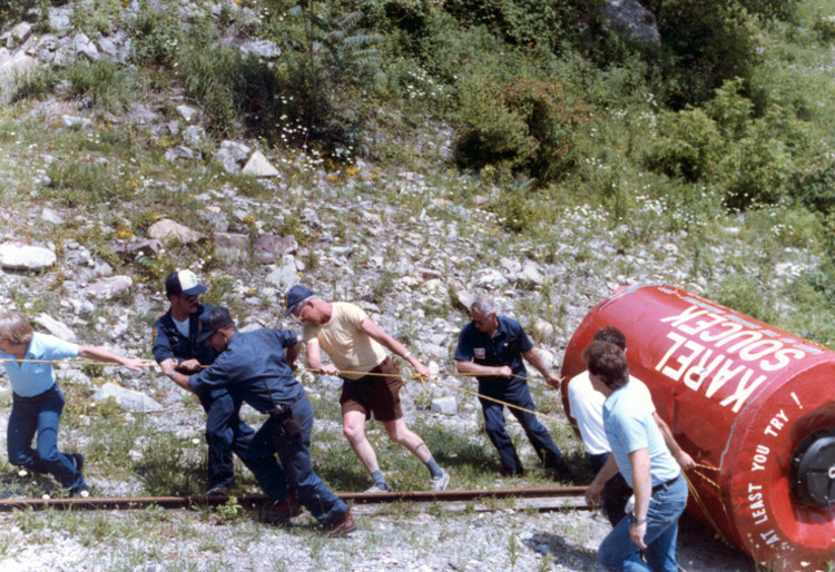- Karel Soucek's barrel July 2 1984 being pulled up boat ramp at Maid of Mist landing dock