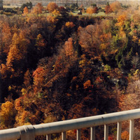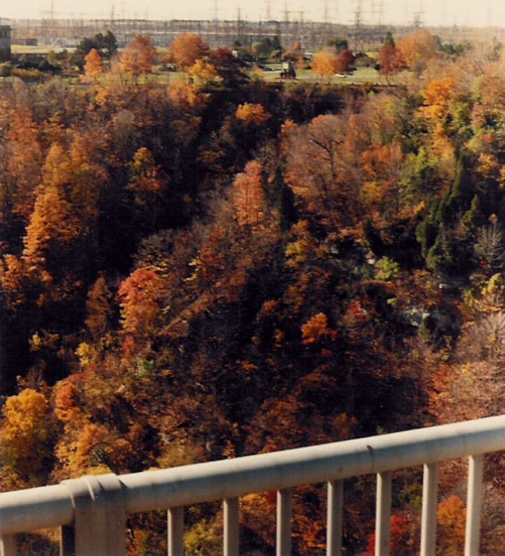 - View of Smeaton Ravine from the Lewiston-Queenston Bridge. The power generators at the summit of the ravine (top of image) belong to the Sir Adam Beck Generating Station No. 1.