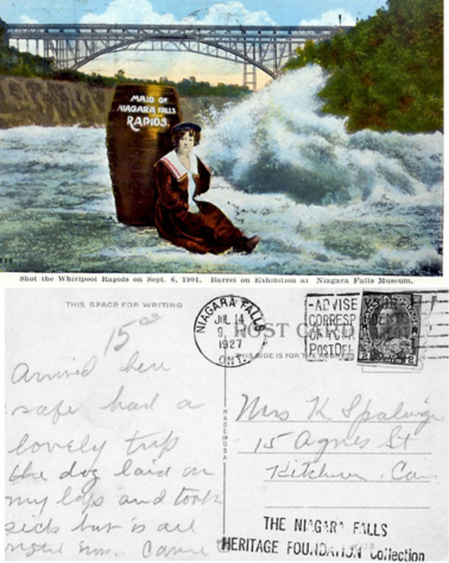 - card was mailed in Niagara Falls July 14 1927 to Mrs. K Sparling 15 Agnes Street Kitchener Canada