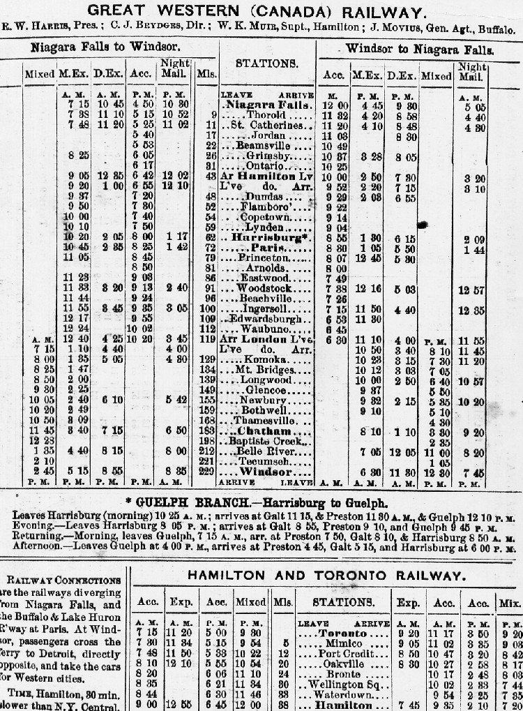 - Railway schedule of the Great Western (Canada) Railway 1857