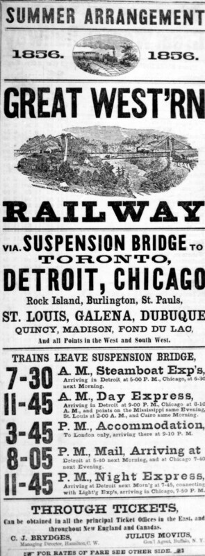 - Summer railway schedule of the Great Western (Canada) Railway 1856