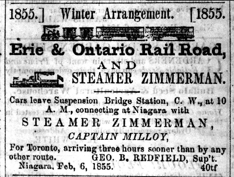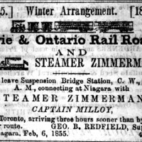 - Advertising for the Erie & Ontario Rail Road and Steamer Zimmerman 1855