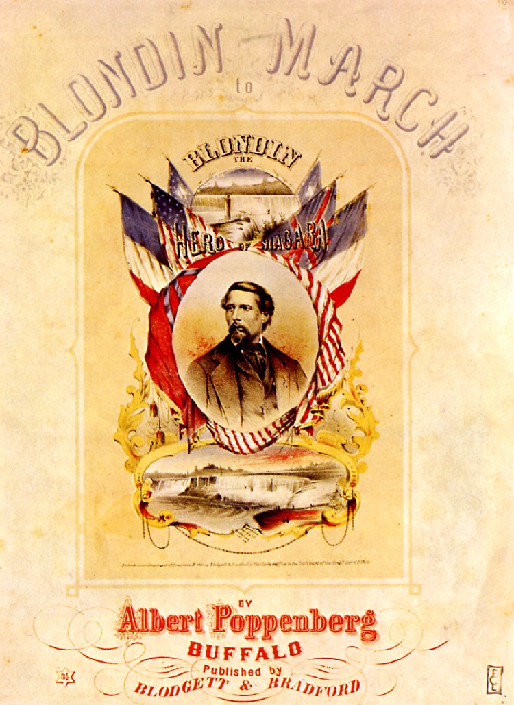 Cover of souvenir booklet Blondin March the Hero of Niagara