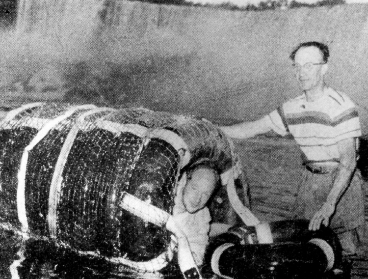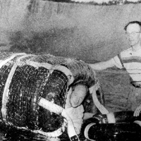 William "Red" Hill Junior posing in the "Thing" in which he lost his life August 5 1951